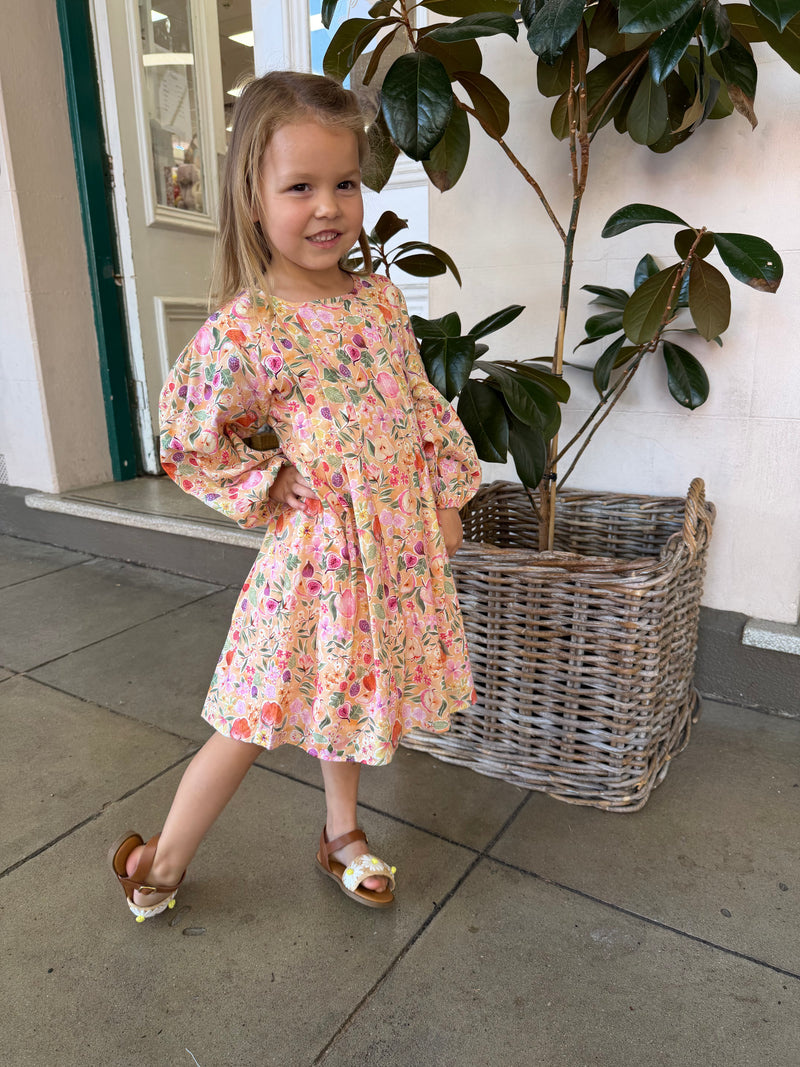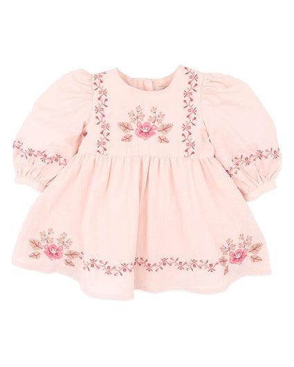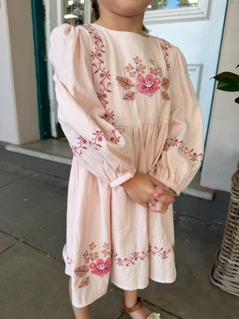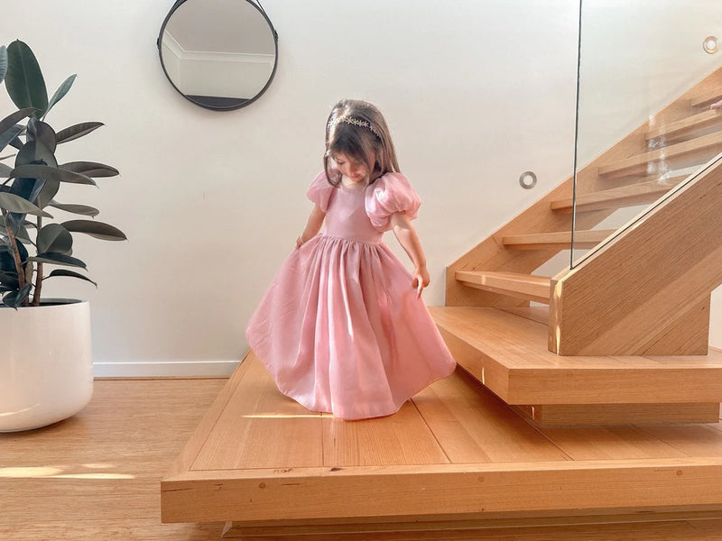 Lucy Girls Puff Sleeve Dress - Dusty Pink