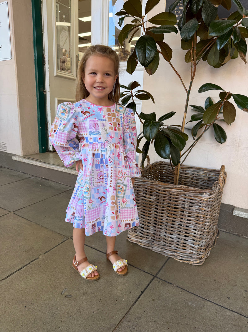 WINTER VACAY STRIPE DENIM DRESS 3-7 YRS