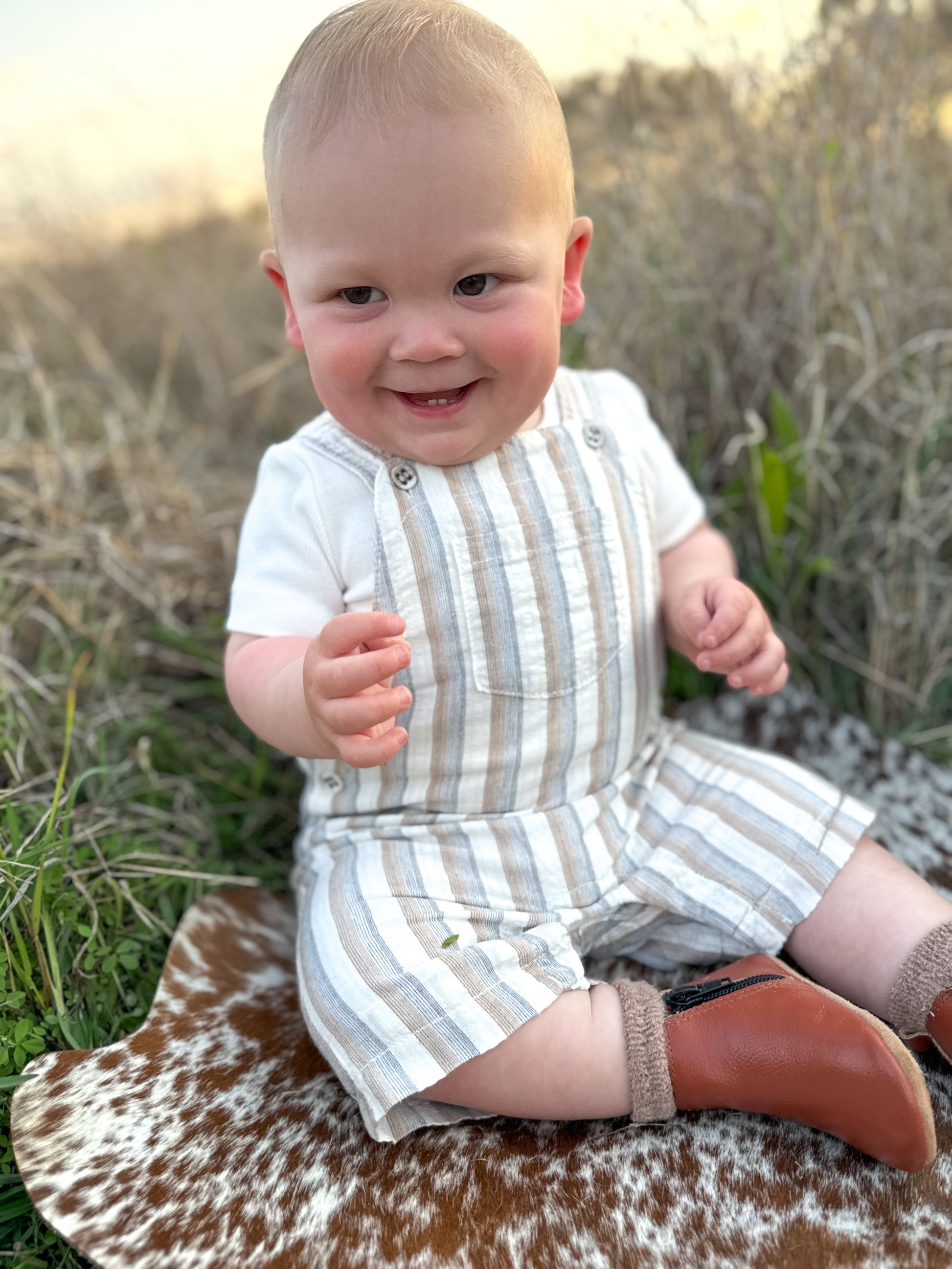 Made for sunshine days and backyard adventures, these classic striped overalls are an easy summer favourite. Woven in soft, breathable cotton and finished with subtle self-covered buttons, they're perfect layered over a tee or worn on their own for warm-weather play.