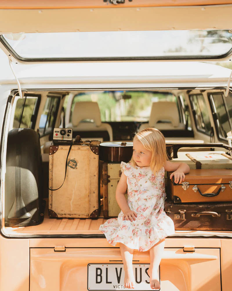 Full of charm and made for twirls, the Anya Dress in Bloom Floral is a timeless favorite for young ones who love to dress up. Crafted from lightweight cotton with a subtle textured finish, this sweet dress features a vintage-inspired floral print in soft pinks, corals, and blues. Frilled shoulder panels and a gently gathered hem add just the right amount of flutter and femininity, while the back button opening makes getting dressed easy. Pair it with the Anya Bloom Headband and Anya Organic Cropped Cardigan for a beautifully coordinated look-perfect for special occasions, garden parties, or everyday magic.