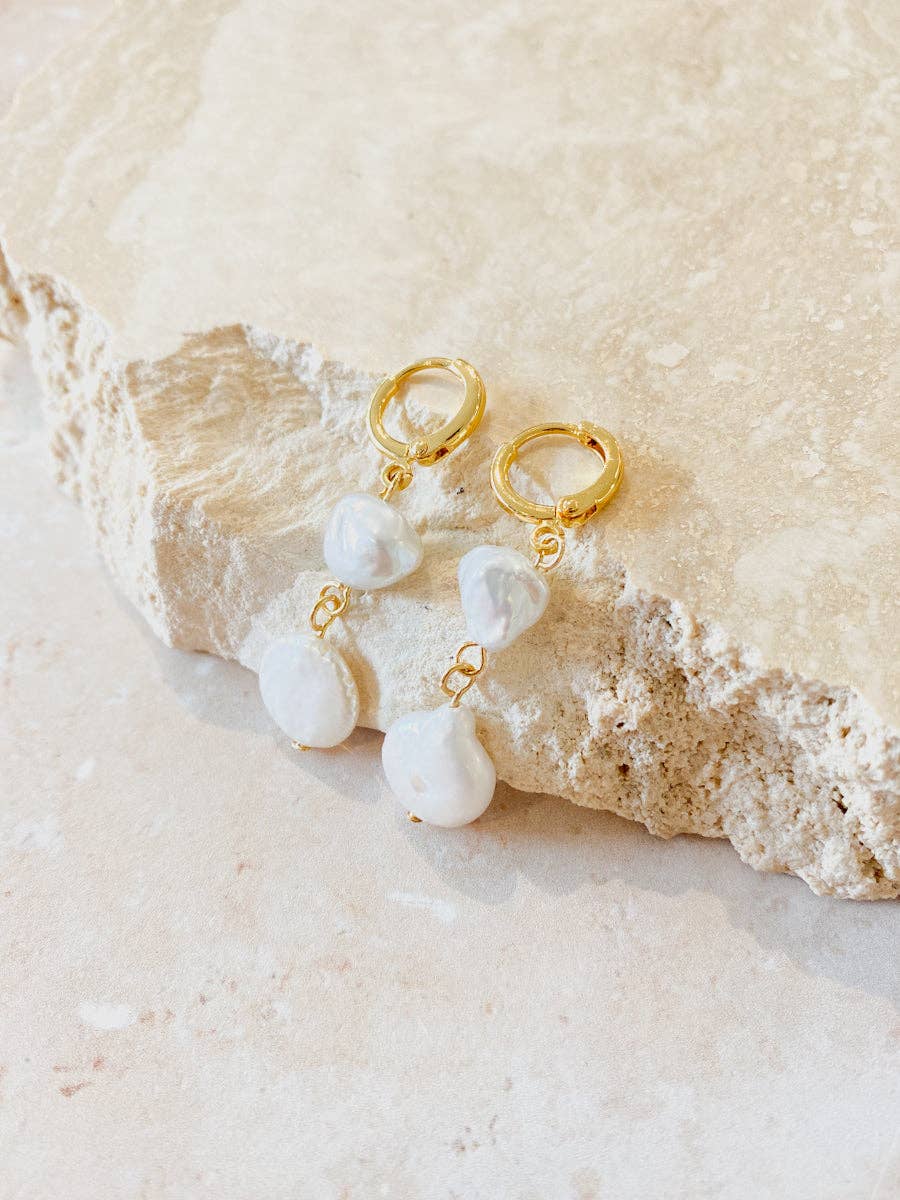 - 18K Fine Gold Plating on Brass Base with Freshwater Pearls