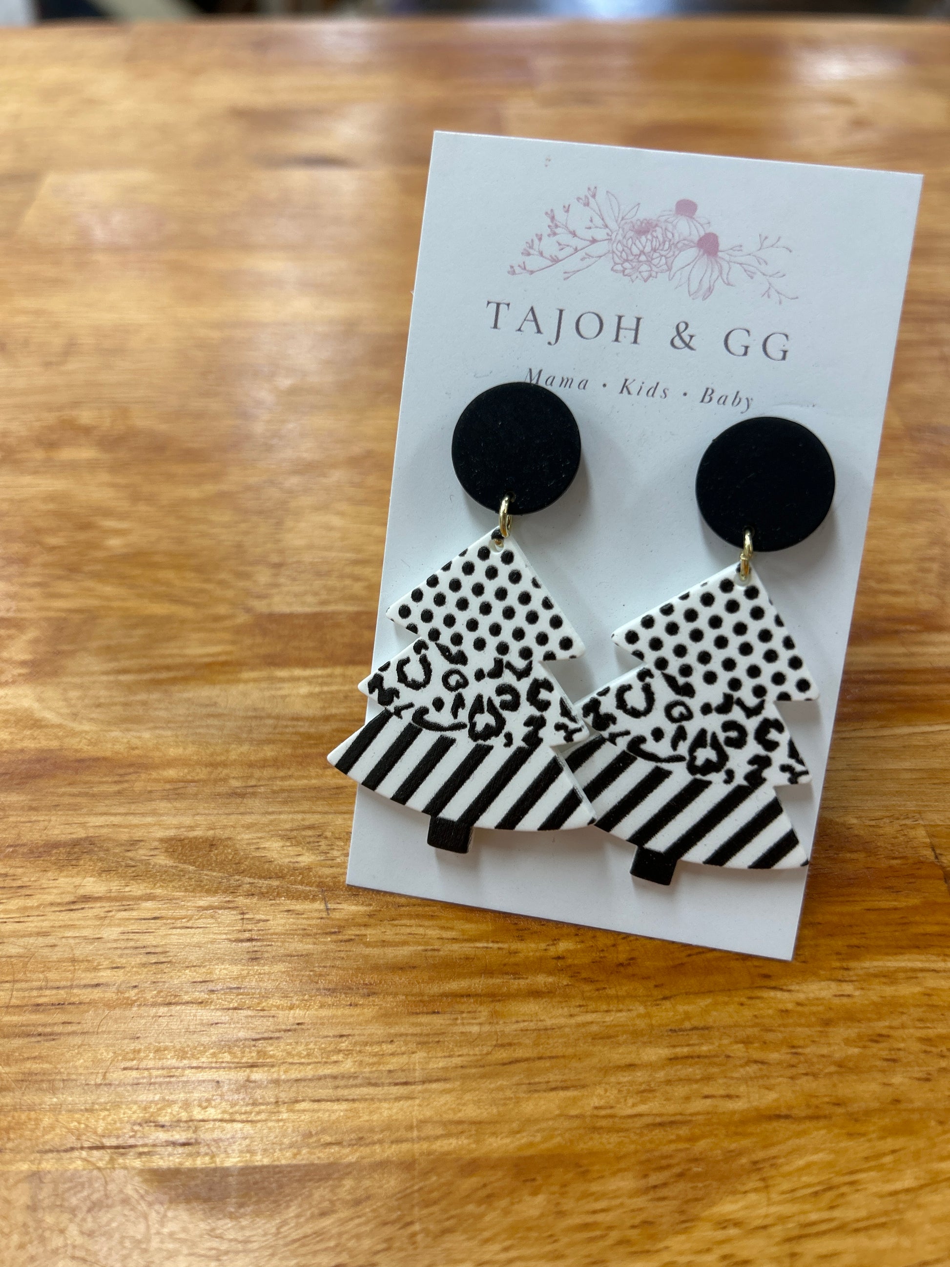 Black and white Christmas tree earrings