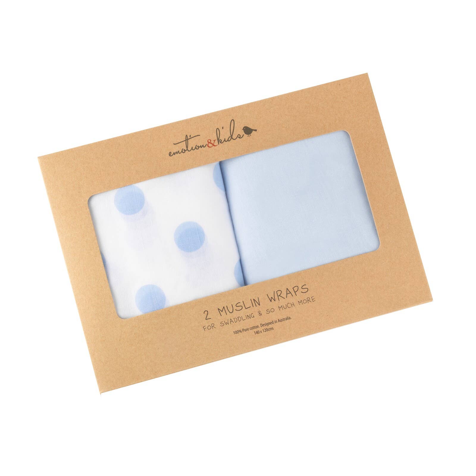 Blue & Blue Spot 2 Pack Muslin Wrap