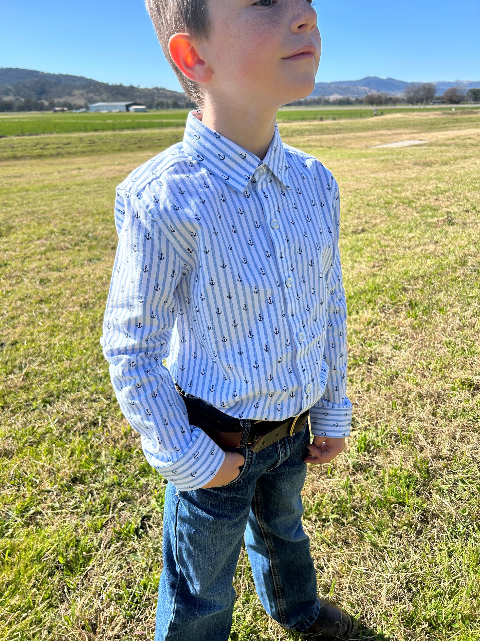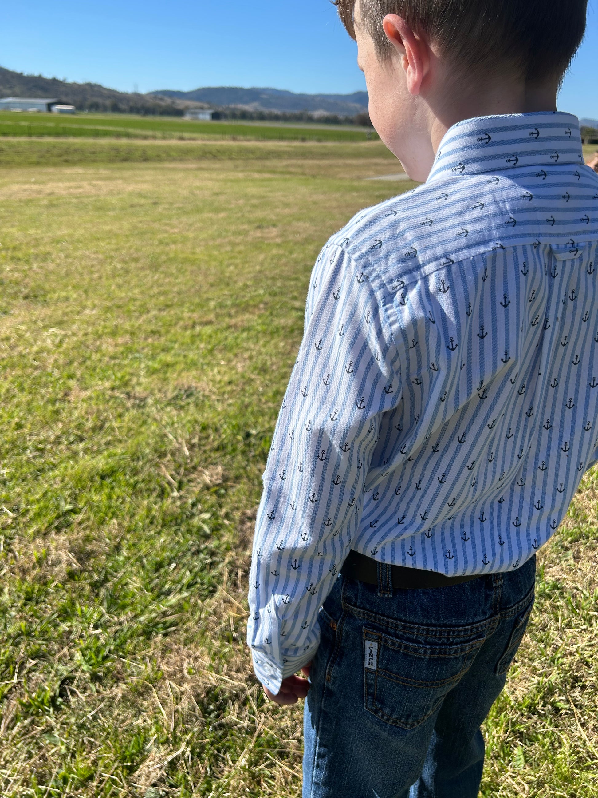 Boys Anchors Ahoy Stripe Long Sleeve Button Down