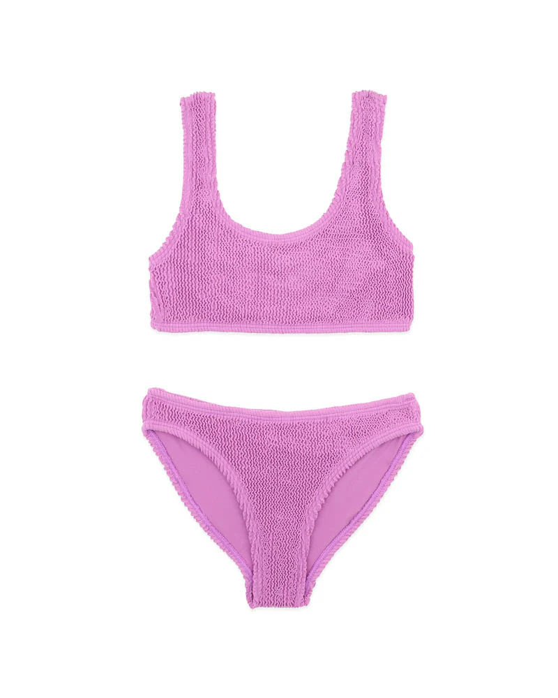 Made for sun-drenched days and endless poolside fun, this textured bikini set brings cool confidence to every splash. With its ultra-comfy shirred fabric and sporty crop top shape, it's the go-to choice for active girls who want to dive, swim, and play in style.