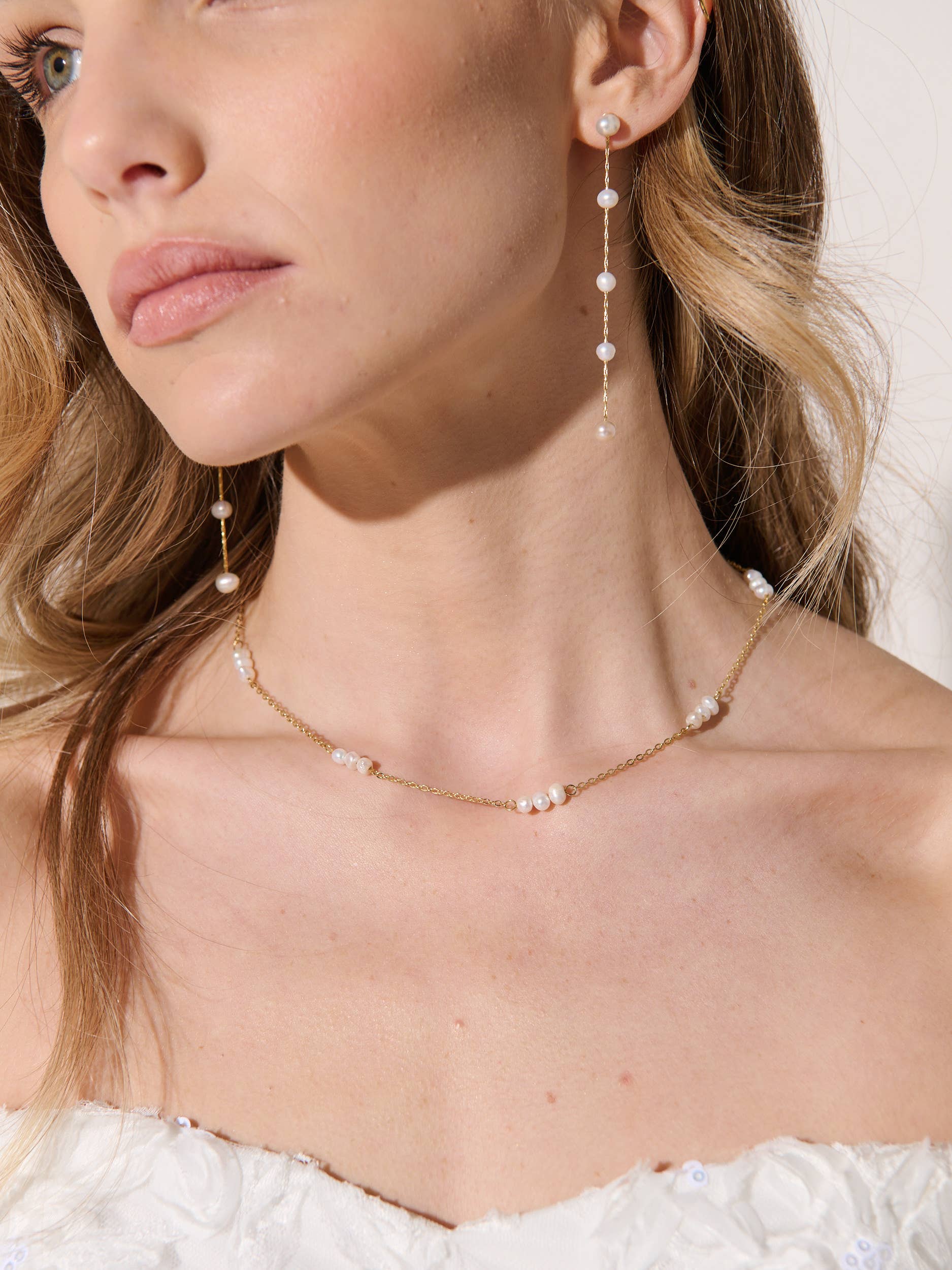 Dainty Pearl Trio 18K Gold Plated Necklace