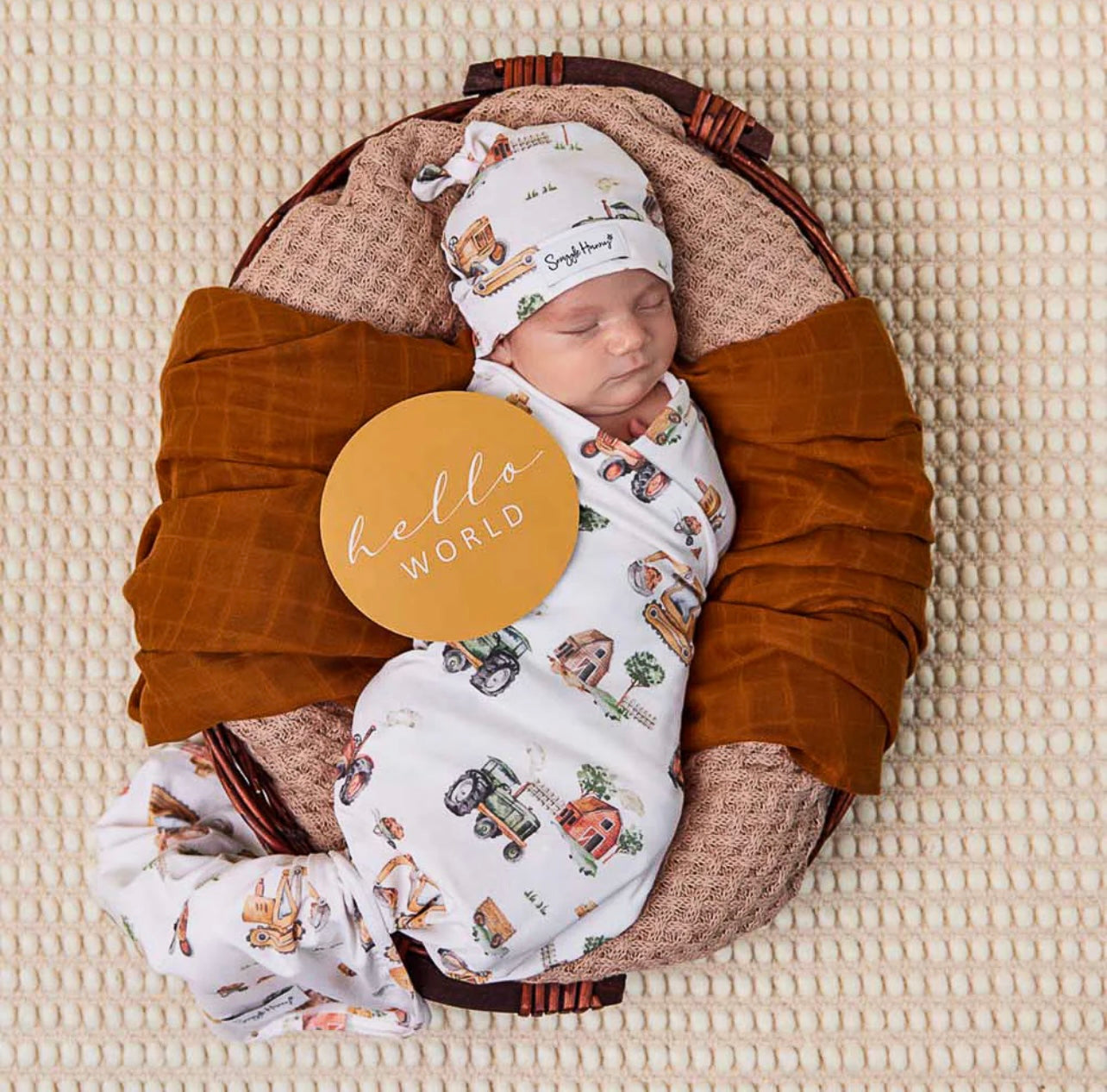 Diggers & Tractors Organic Jersey Wrap & Beanie Set