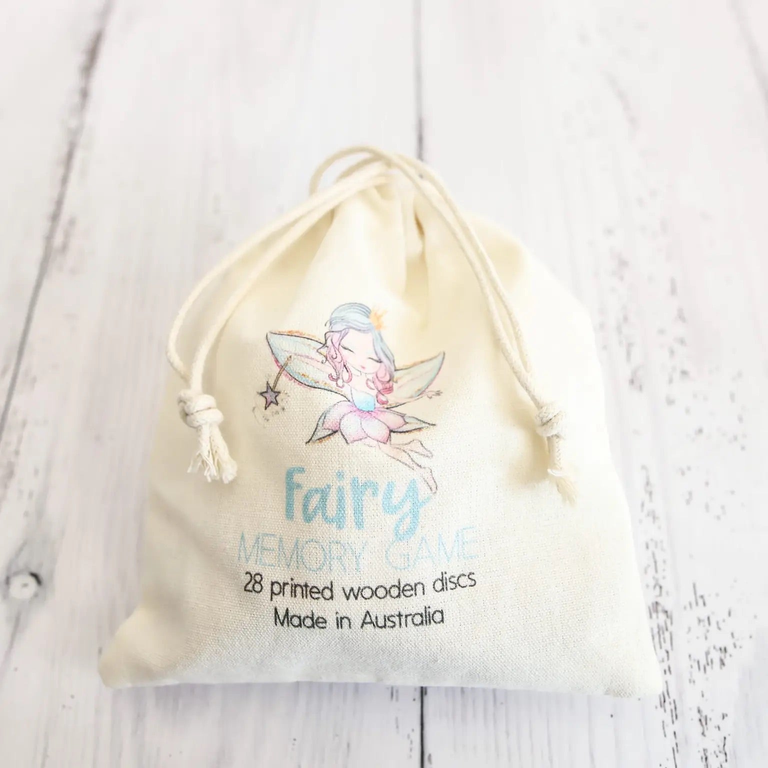 Introduce your child to the fun world of fairy memory games! This 28-piece set consists of wooden discs with stunningly designed fairy artwork, perfect for young kids learning and memory skills. Give your child an exciting new way to learn. Comes packaged in a cute little calico bag.