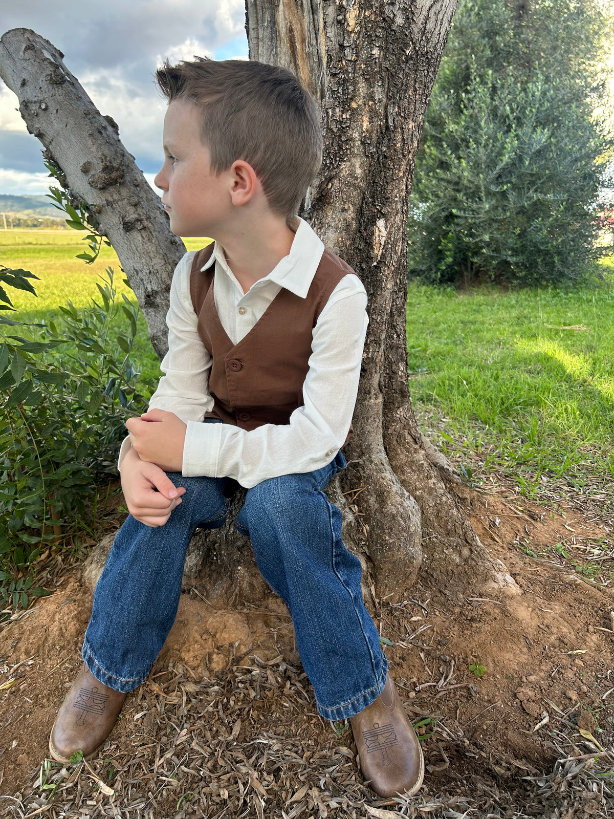 The Finley Linen Vest features a tailored with front button detailing. Perfect for suiting up your little trendy man.