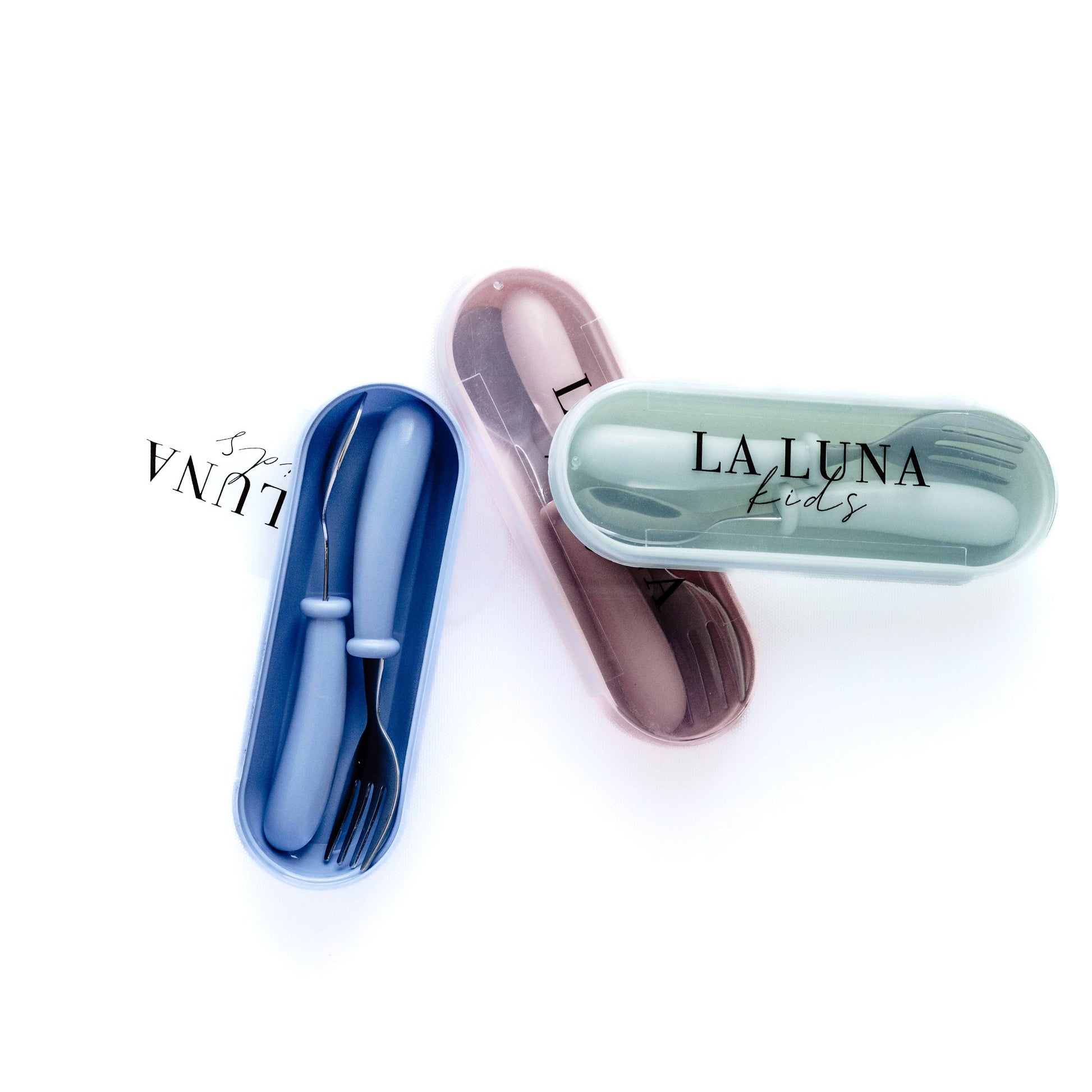Our lightweight stainless steel fork & spoon set, easy-grip handles that are perfect for little ones to hold.
