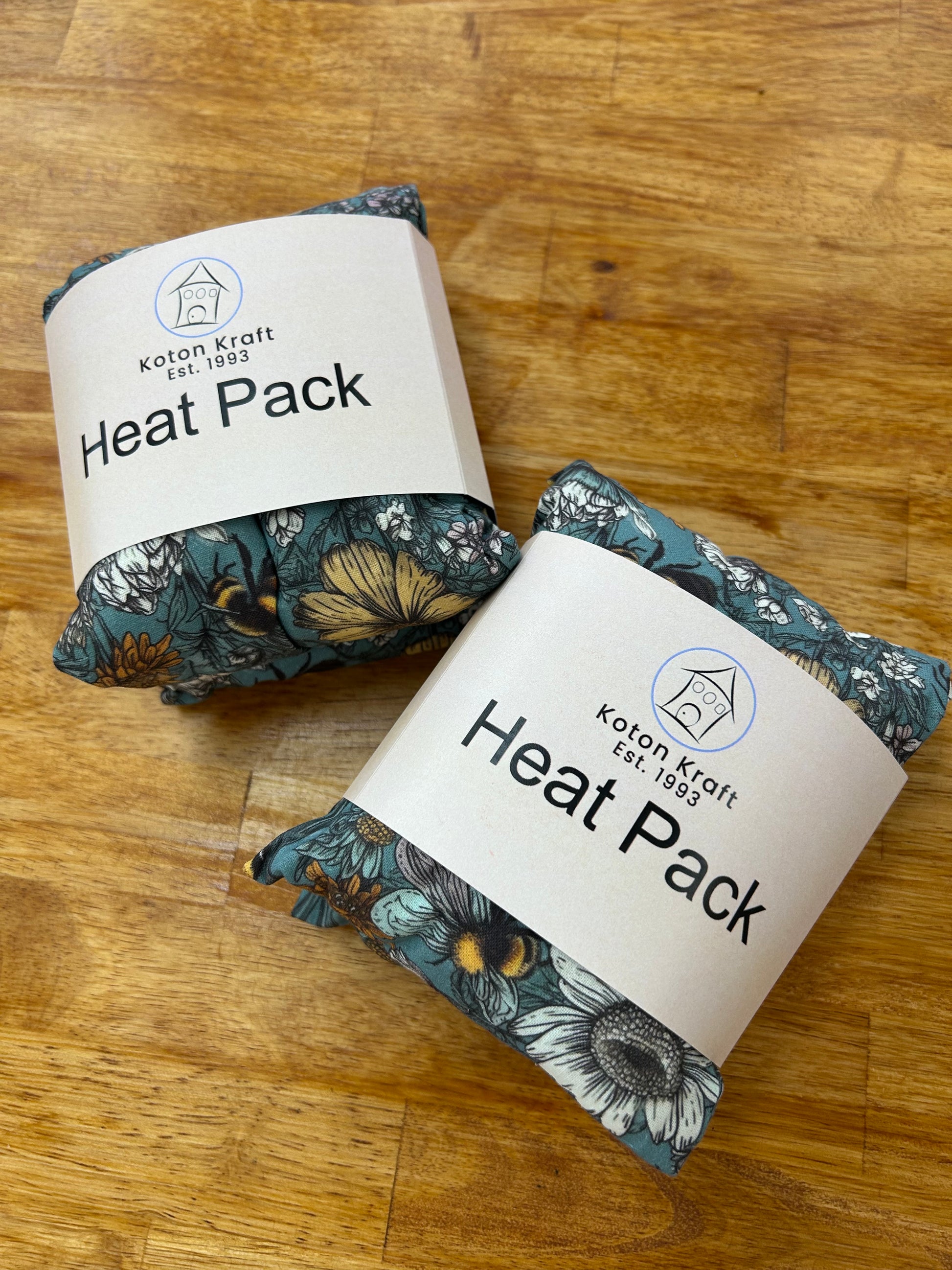 Inner pouch contains terracotta beads. Outer case 100% cotton and machine washable.