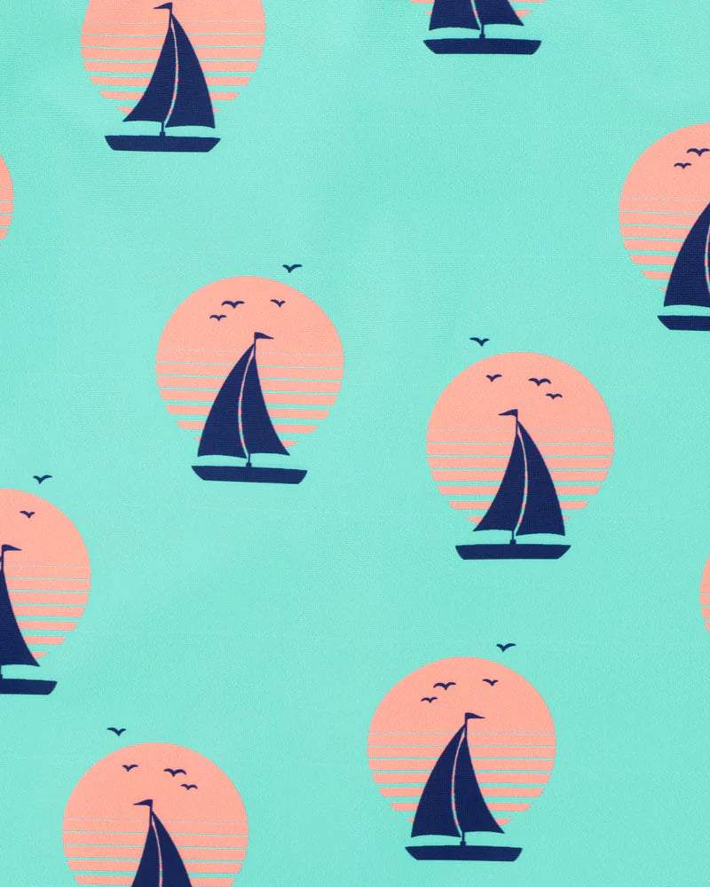 • Nautical sailboat print on aqua background