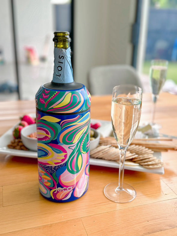 Elevate your wine experience with the Jeca Wine Cooler, where performance meets style. Featuring an exclusive hand-drawn design by founder Katie Bode, this cooler doesn’t just keep your drinks chilled for up to 6 hours, it makes a statement.