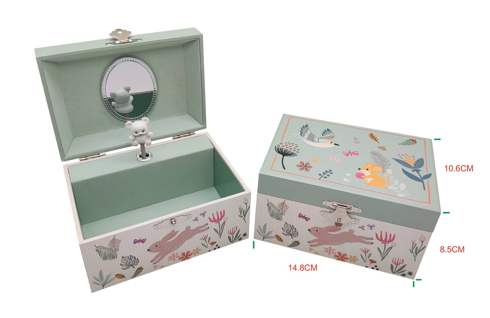 Open the lid and let the melody of Swan Lake escort you into a whimsical world of cuddly critters! This charming animal-themed musical jewellery box features a display of adorable animal figures dancing along to the tune, with a colourful exterior and soft velvet-lined interior.