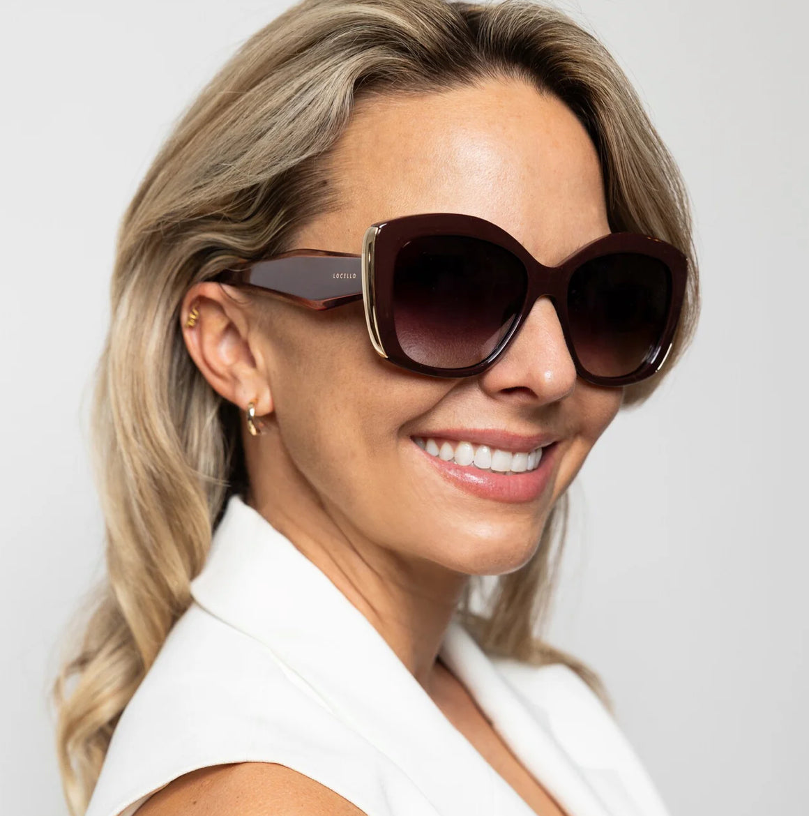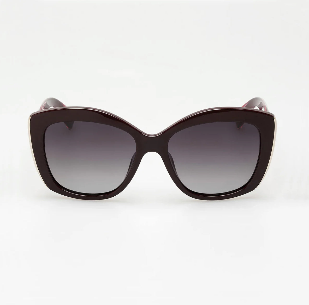 When it comes to sunglasses, Samara knows how to make a statement. Their rectangular ruby-red frames with gold metal detail exude confidence. But these sunglasses aren’t just about style. They’re also designed to protect your eyes with polarised gradient smoke lenses that offer 100% UV protection. With their bold colour and sleek design, you’ll feel ready to take on whatever the day throws your way. Embrace the confidence that comes with wearing a pair of Samara sunglasses.