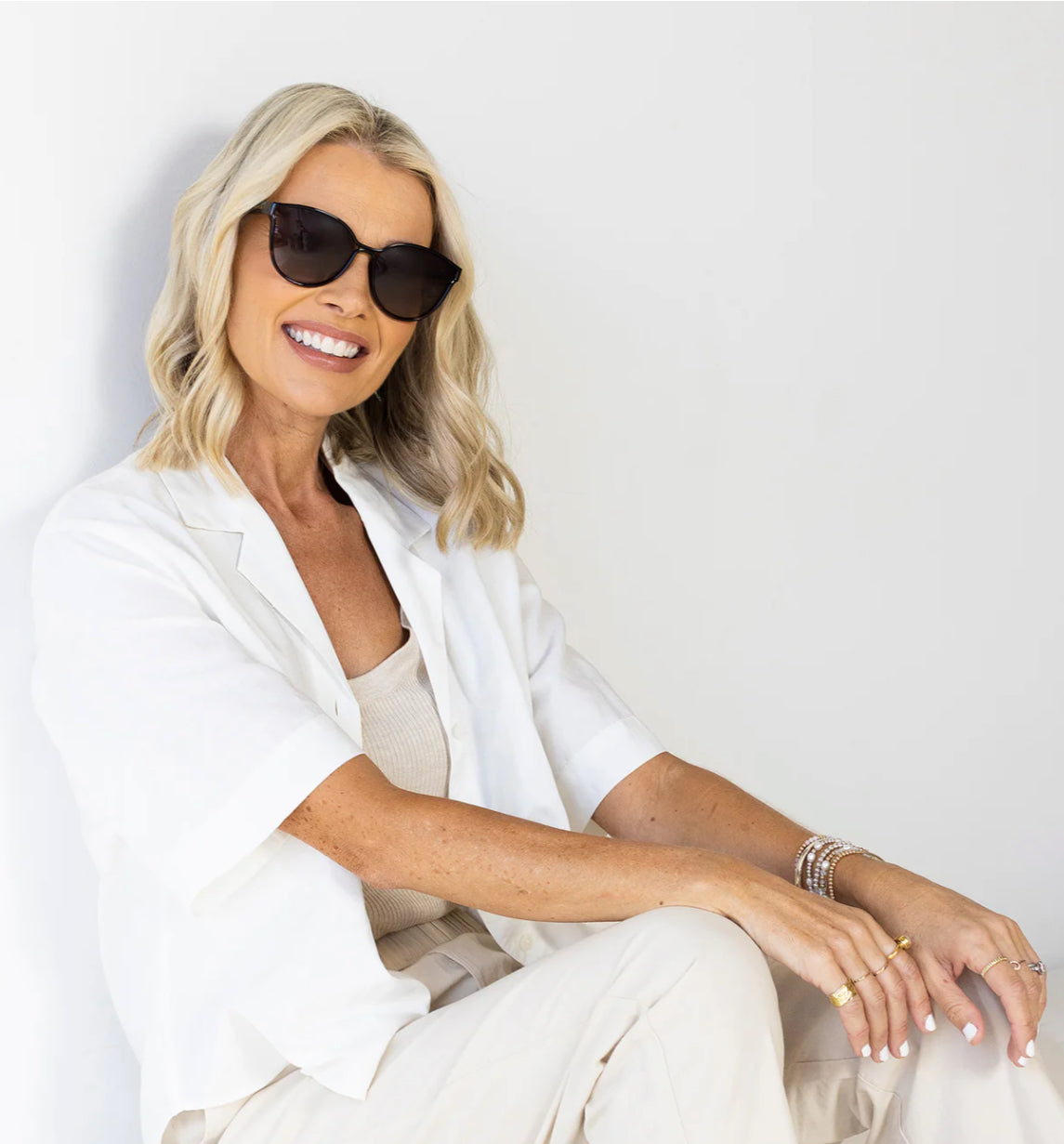 With her ombre tortoiseshell cat eye frame and matching temple tips, alongside understated brown lenses, she perfectly captures the serenity of the season.