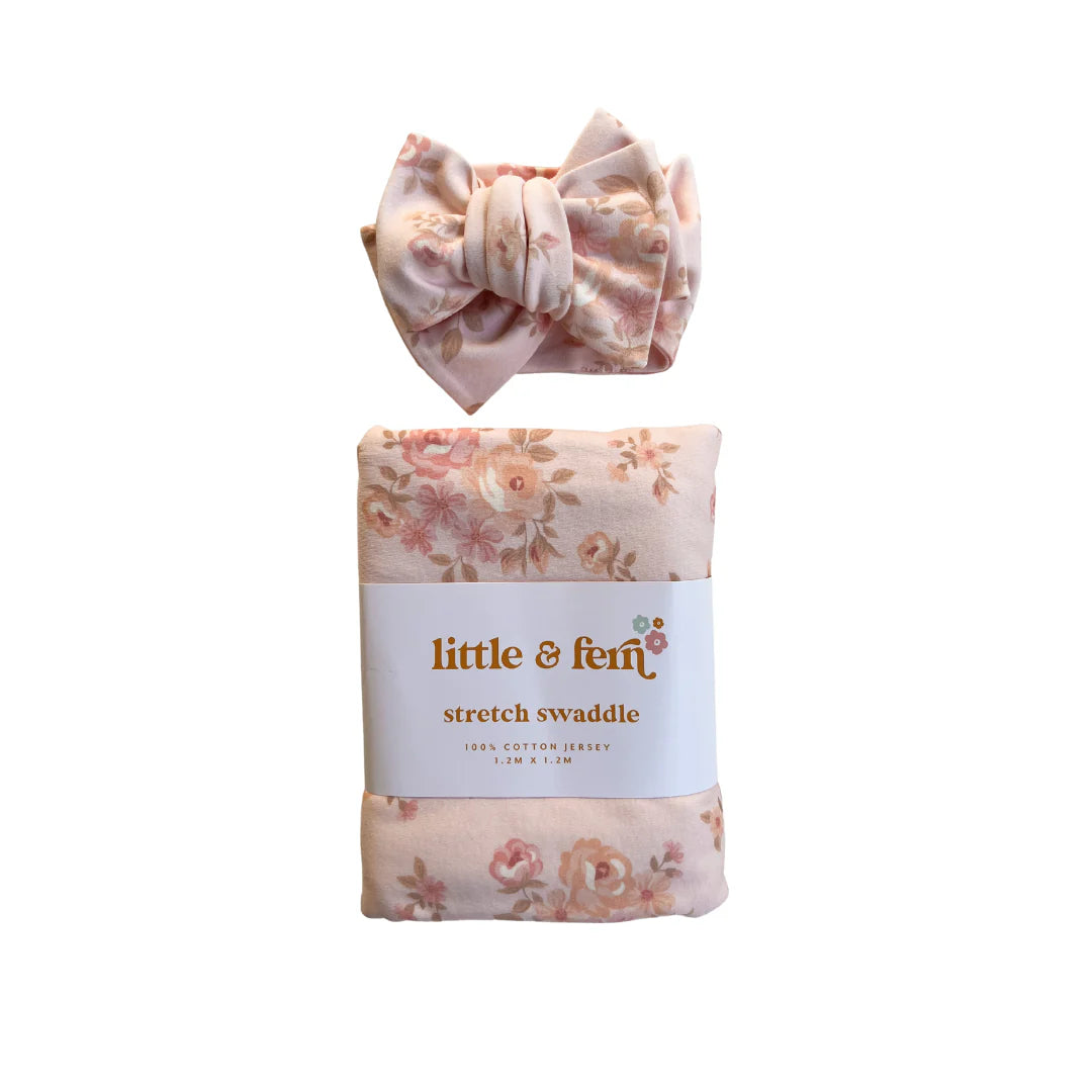 Introducing the new Florence swaddle. A gorgeous combination of elegance and beauty, with a vintage twist. The perfect swaddle for a sweet pink announcement.