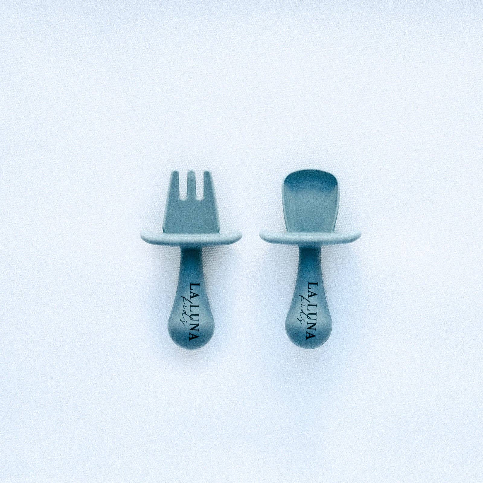 Our silicone training fork and spoon feature easy grip handles and a choke guard designed to make it easy for your little one to use.