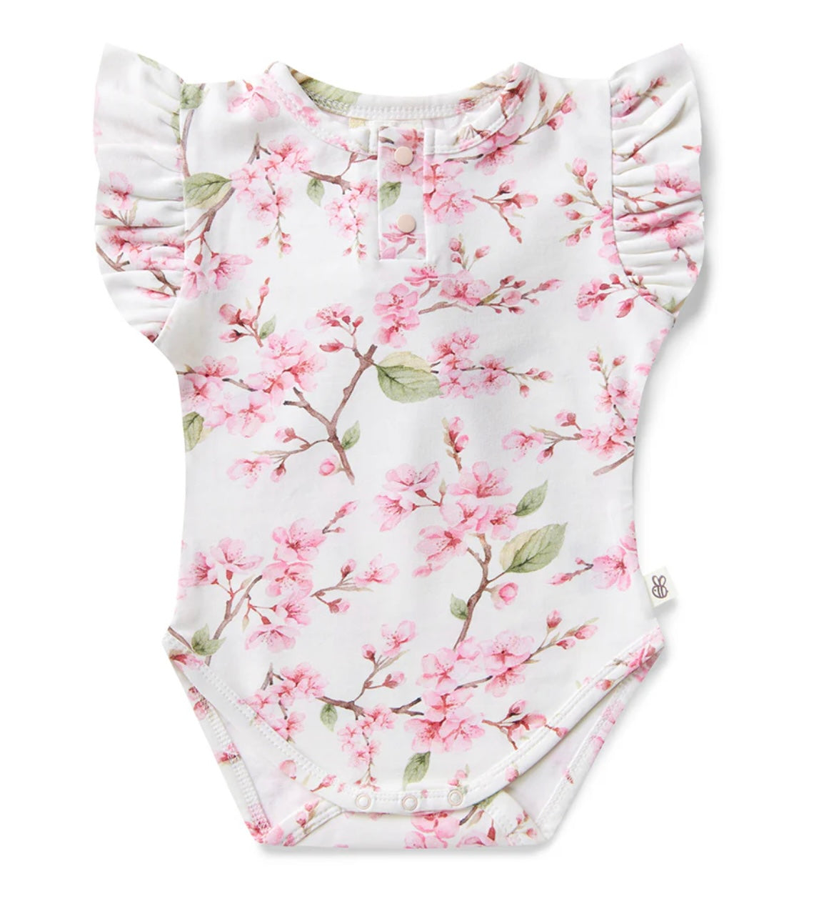 Cherry Blossom Short Sleeve Bodysuit With Frill