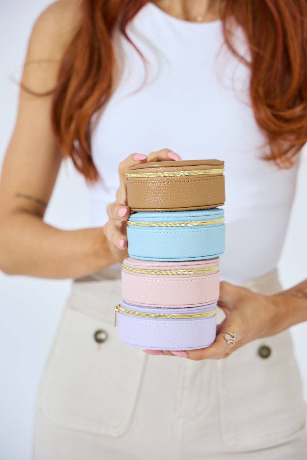 Vegan PU Leather Jewellery Box - Round - Light Pink - Small